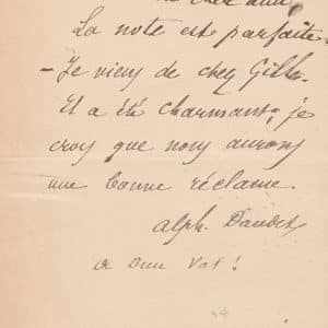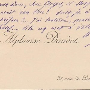 Alphonse Daudet nait le 13 mai 1840 à Nîmes dans une famille catholique légitimiste. Son père tisserand et négociant en tissu fait faillite et empêche Alphonse de passer son baccalauréat. Il devient alors maître d’étude au collège d’Alès mais désire embrasser une carrière littéraire. Sans le sou il rejoint son frère Ernest à Paris en novembre 1857. Il même une vie dissolue tout en commençant à publier des vers, il se lie d’amitié à Frédéric Mistral. Il devient secrétaire pour le duc de Morny, mais le décès soudain du duc en 1865 l’amène à se consacrer entièrement à la littérature en devenant chroniqueur pour le Figaro et écrivain. Il connait son premier succès au théâtre en 1862 avec la Dernière idole. Après avoir voyagé en Provence, Daudet débute avec Paul Arène, considéré comme son nègre, l’écriture des premiers textes des Lettres de mon moulin. Le petit Chose, Histoire d’un enfant sont publiés en 1868, puis Fromont jeune et Risler aîné en 1874. En 1872 il publie les Aventures prodigieuses de Tartarin de Tarascon, dont le personnage est devenu mythique. Atteint d’une maladie incurable à la moelle épinière conjuguée à la complication d’une syphilis contractée dans sa jeunesse il continue cependant à publier des livres jusqu’en 1895, mais il meurt épuisé le 16 décembre 1897 à Paris.