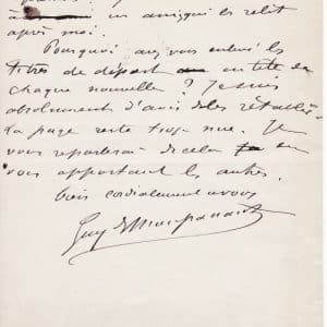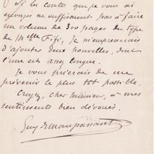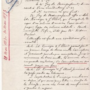MAUPASSANT Guy de – Contrat manuscrit signé – Bécasse