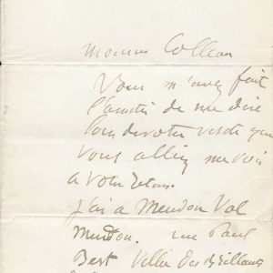 Auguste RENOIR – Lettre autographe signée au marchand Durand-Ruel